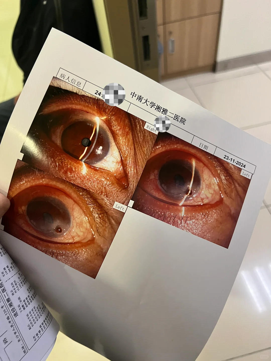 已经是图中的角膜穿孔了。当天就决定要住院,等角膜,做角膜移植手术。预交住院费35000。